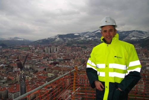 Al mediodía de hoy, Pedro Azpiazu y yo hemos conseguido incorporarnos a un pequeño grupo de jóvenes arquitectos que visitaba las obras de la torre de Iberdrola. El edificio es espectacular. Desde un punto de vista constructivo, el trabajo afronta los retos propios de los edificios de su envergadura: la cimentación, las grúas, los ascensores de obra, las instalaciones mecánicas y eléctricas, la seguridad, etcétera. Todo ello resulta impactante para el lego y de sumo interés para el entendido. Y aunque para los gustos se hicieron los colores, la enhiesta verticalidad del edificio -en torno a los 170 metros de altura- que emerge desde la trama urbana de Bilbao para mirar de tú a tú a los cerros y montañas que abrazan al bocho, me parece todo un acierto estético.