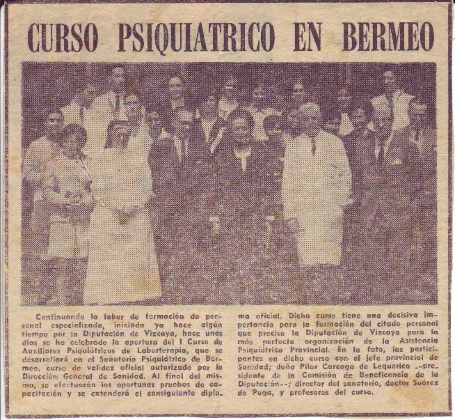 Pilar Careaga, en el centro, inaugurando el I Curso de Auxiliares Psiquiátricos de Laborterapia desarrollado en el hospital de Bermeo. Ocupaba, a la sazón, el cargo de presidenta de la Comisión de Beneficencia de la Diputación de Bizkaia.