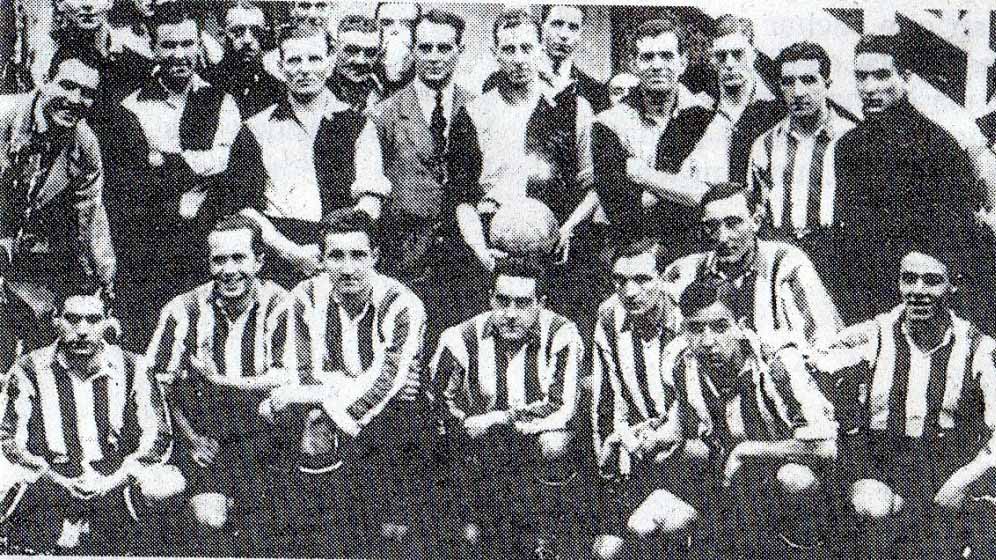 José Antonio Aguirre -agachado, tercero desde la izquierda- posando con la alineación del Athletic Club de Bilbao, en los años veinte