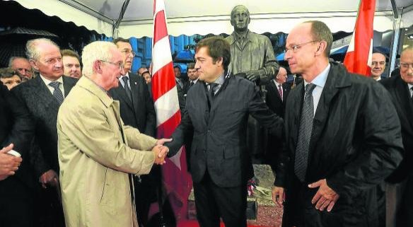 Una vez concluido el acto, se tributó una ofreda floral a la estatuta de José Antonio Aguirre que se encuentra junto al hotel Carlton. Un aurresku de honor sirvió para dar inicio a un acto breve y emotivo, en el que cobró especial protagonismo el hijo del ex-Lendakari, Joseba Aguirre Zabala. Pese a la pertinacia con la que caía, la lluvia vespertina no logró deslucir el acto.