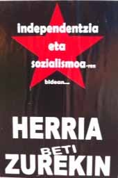 Hace unas semanas, me encontraba haciendo footing por el parque de Etxebarria, cuando observé que, sobre la superficie lateral de una caja eléctrica, alguien había colocado una pegatina de fondo negro, sobre el que destacaba, ostensiblemente, una estrella roja de cinco puntas. Una leyenda, visiblemente expresada en letras de color blanco, sentenciaba: Independentzia eta sozialismoaren bidean, herria beti zurekin.