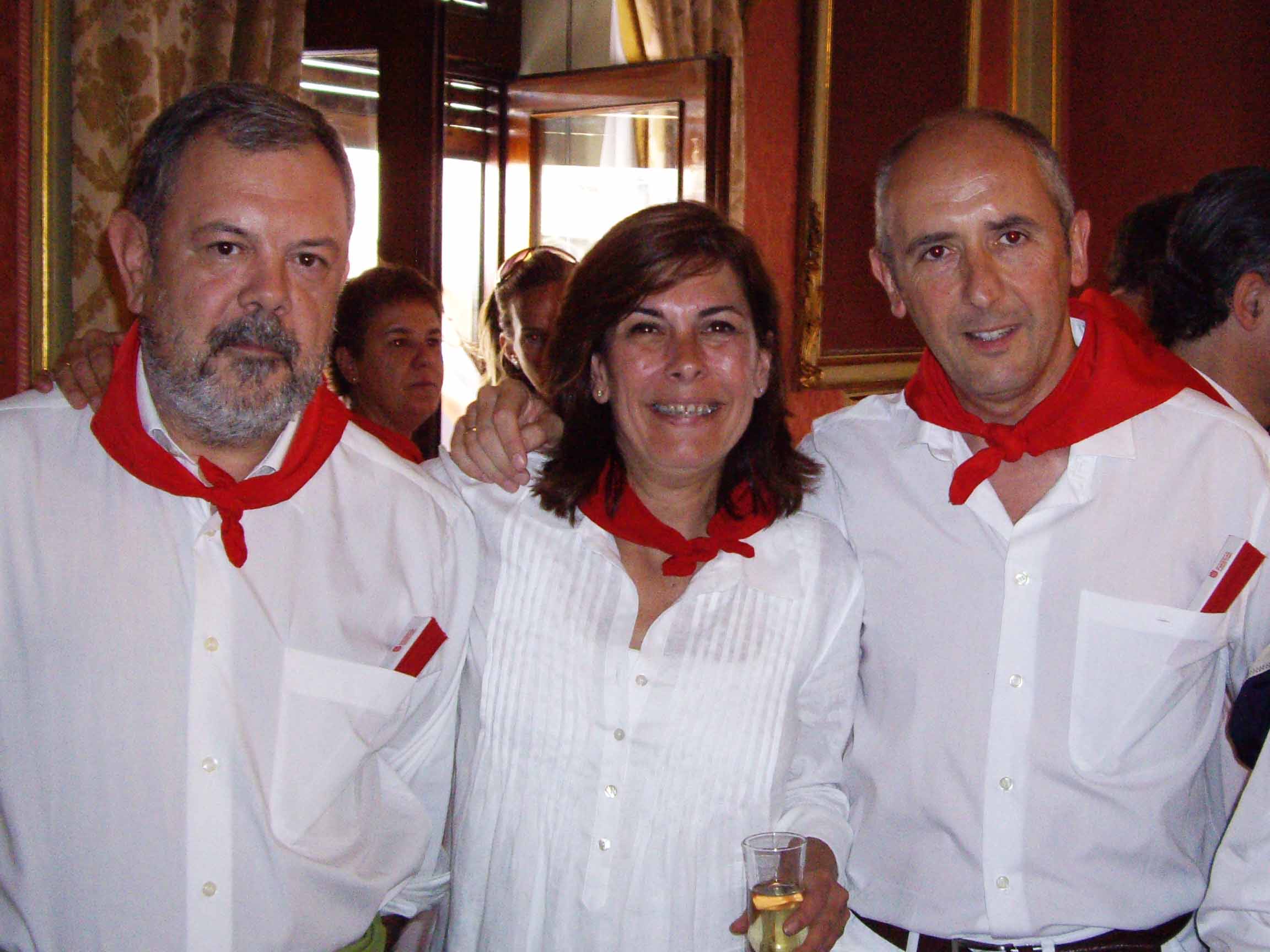 Azpiazu eta biok Uxue Bakos-ekin, 2008ko uztailean, San Fermin bezperan Iruneako udaletxetik txupina bota zuenean
