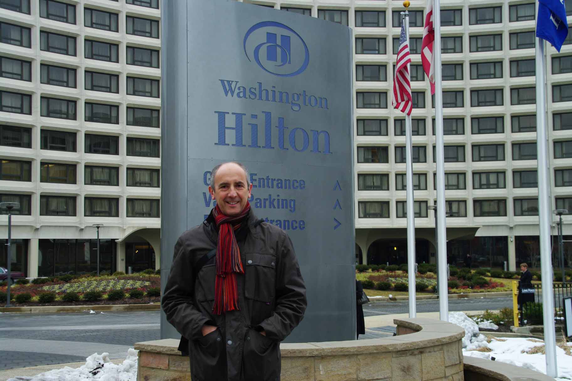Washington-eko Hilton hotelaren atarian. Leku honetan egiten da urtean-urtean National Prayer Breakfast ekitaldia