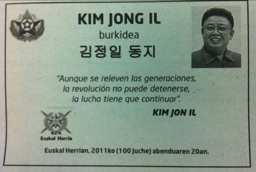 “A algunos ha sorprendido el hecho de que el diario Gara haya publicado una esquela en recuerdo hagiográfico del líder norcoreano recientemente fallecido. A mí no me ha sorprendido en absoluto. ¿Hace falta explicar por qué?”