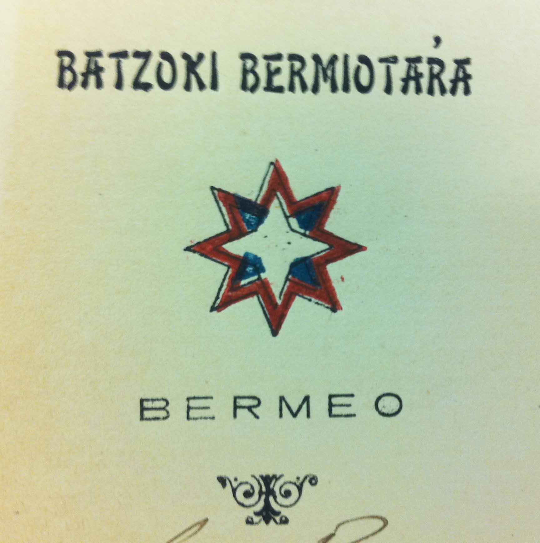 “Bilbon Centro Vasco sortu dan legez, Bermeon bere soziedade bat sortu gura zan, euskerazko izenekoa, ezkara Pasiegoak-eta; Batzoki Bermiotarra dau izena. Batzoki edo Soziedade guztiek eukiten dabe banderea ta gure onek be bear eban; eta bandera gorri bat, erdian Bermeo-ko erriaren armak daukazana, da Batzoki onek daukana. Ortu santu edo obitegitik euskerazko letrerua atarateak Bermeo benetan maite dabenak irakiten ipiñi ebazan, eta atatik iaio zan, orain jauntxu edo caciqueen kriadu modura kontzejura doazenen ordez, beste kontzejal batzuk Bermeotar egiazkoak ataratea. Eta ¡¡itsututa egon dira!! Letrerua kentzea baino txarrago egin dabe: iñoren etxean, inor ezegoala, sartu ta banderea artu, ¿ostu esango dot ala ez?