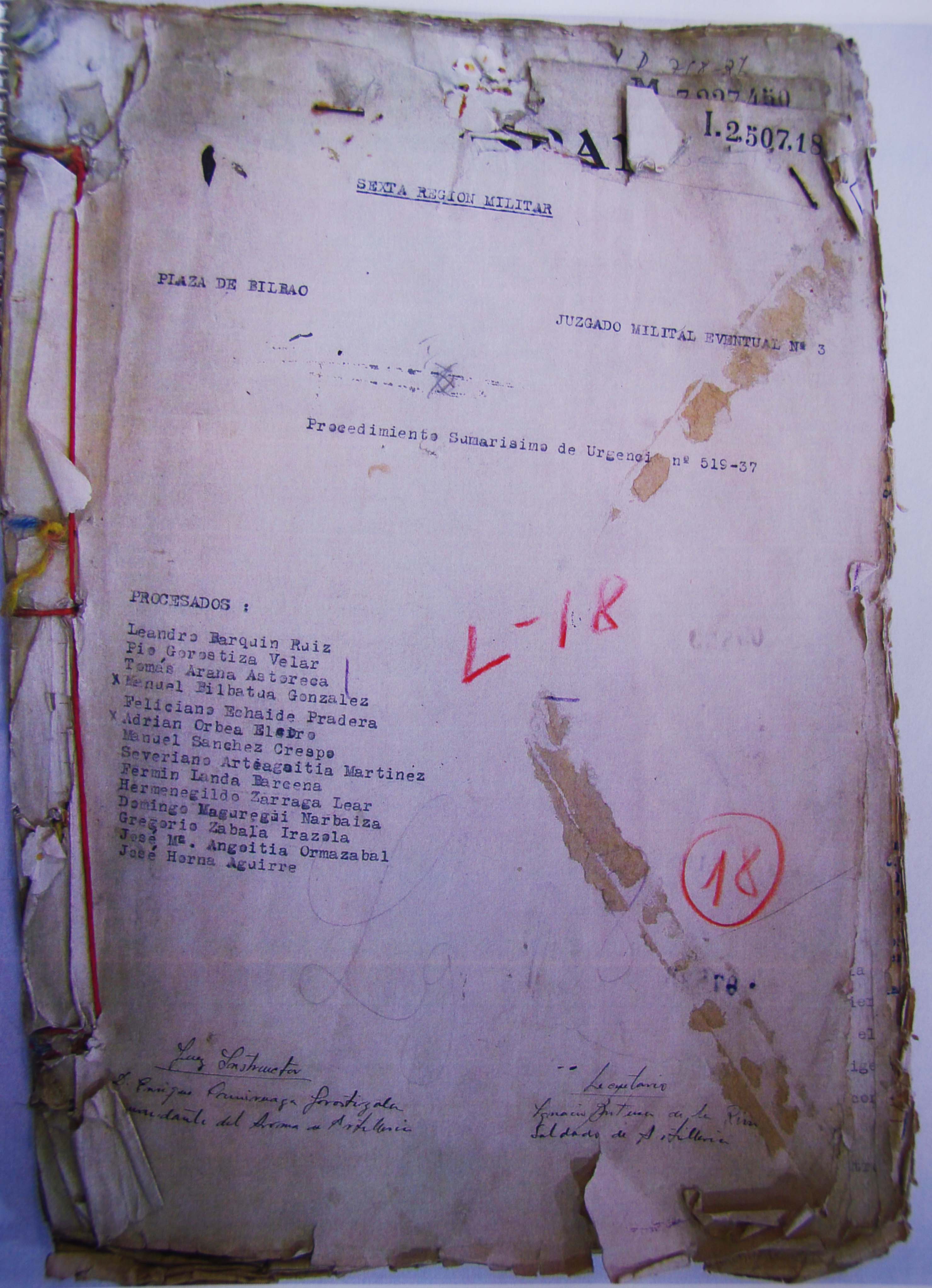 Tomas Arana epaitu zuen Gerra Kontseiluak osatu zuen espedientea: Procedimiento Sumarísimo de Urgencia nº 519-37. Hamalau gizon izan ziren epaituak prozesu berean