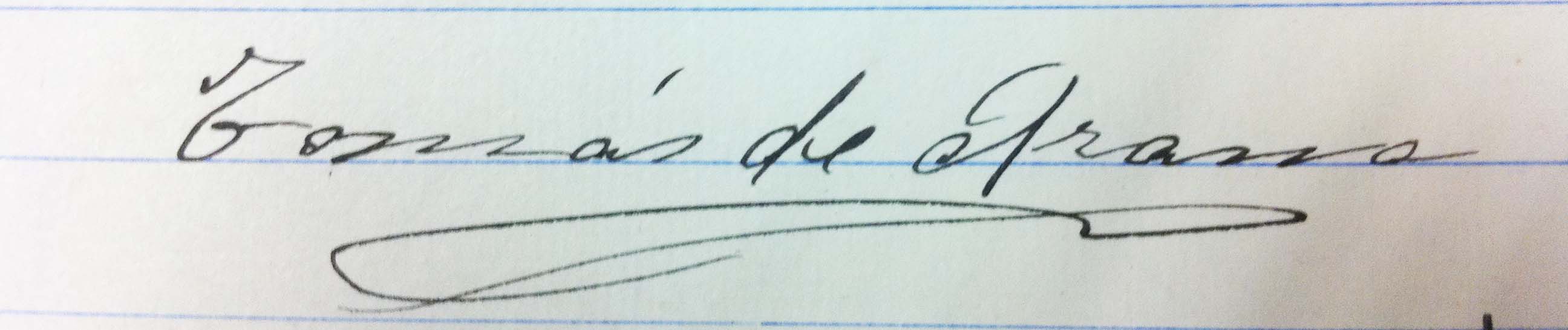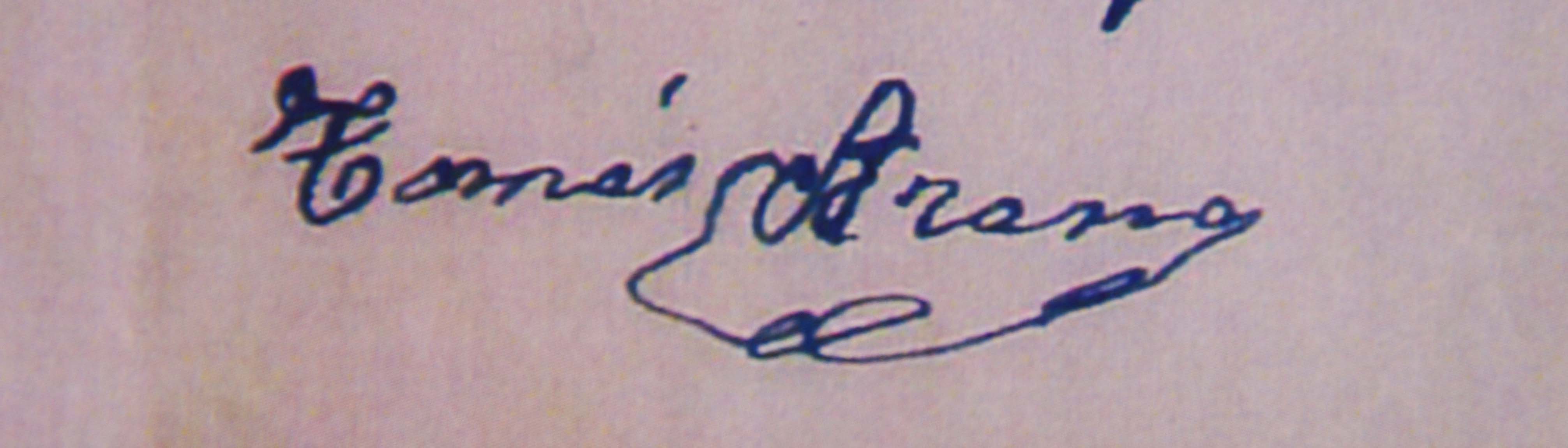 Espetxean zegoela idatzi zuen sinadura honetan argi asko ikusten da kartzelako bizitza latzaren eraginez, behea jota aurkitzen zela Tomas 1940 urtean. Oso adierazgarria sinadura hau, zinegotzia zen garaian egin zuenarekin.